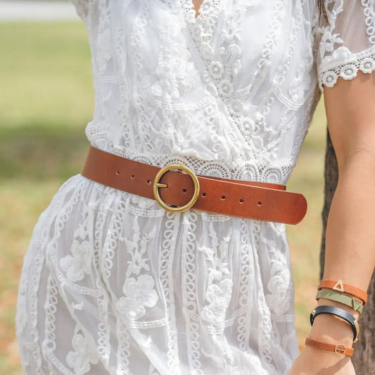 Ultra Wide Genuine LeatherCircle Buckle Belt