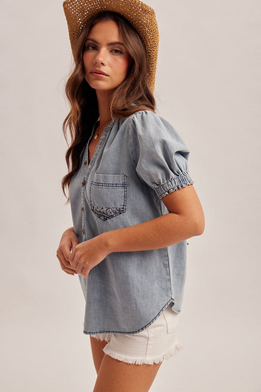 Washed Embroidered Top