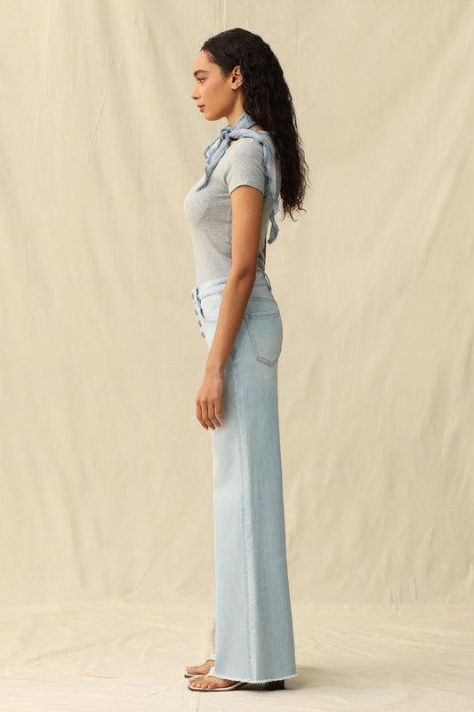 Risen Mid Rise Crop Wide Leg Cuff Jean