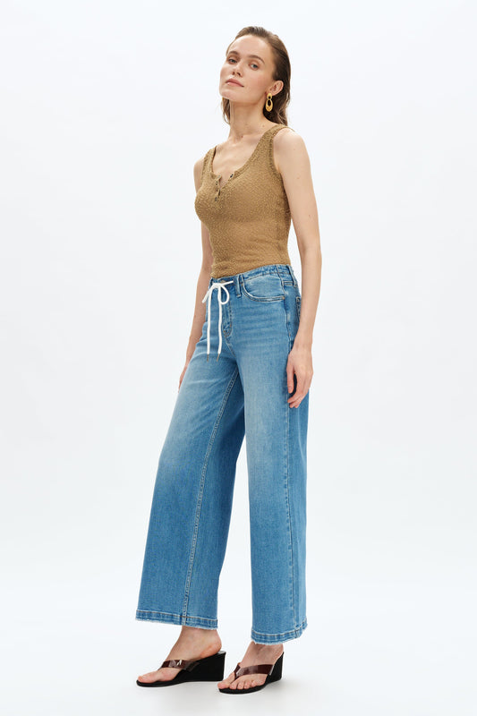 Risen Tummy Control Mid Rise Crop Wide Pintuck Jean