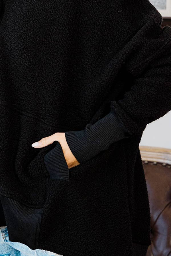 Oversized Fluffy Teddy Fur Hoodie Tunic Top - Snap button-up at front - Dropped shoulders - Tunic length - Ribbed cuffs, pockets and hemline - Side pockets - So comfy and cozy top