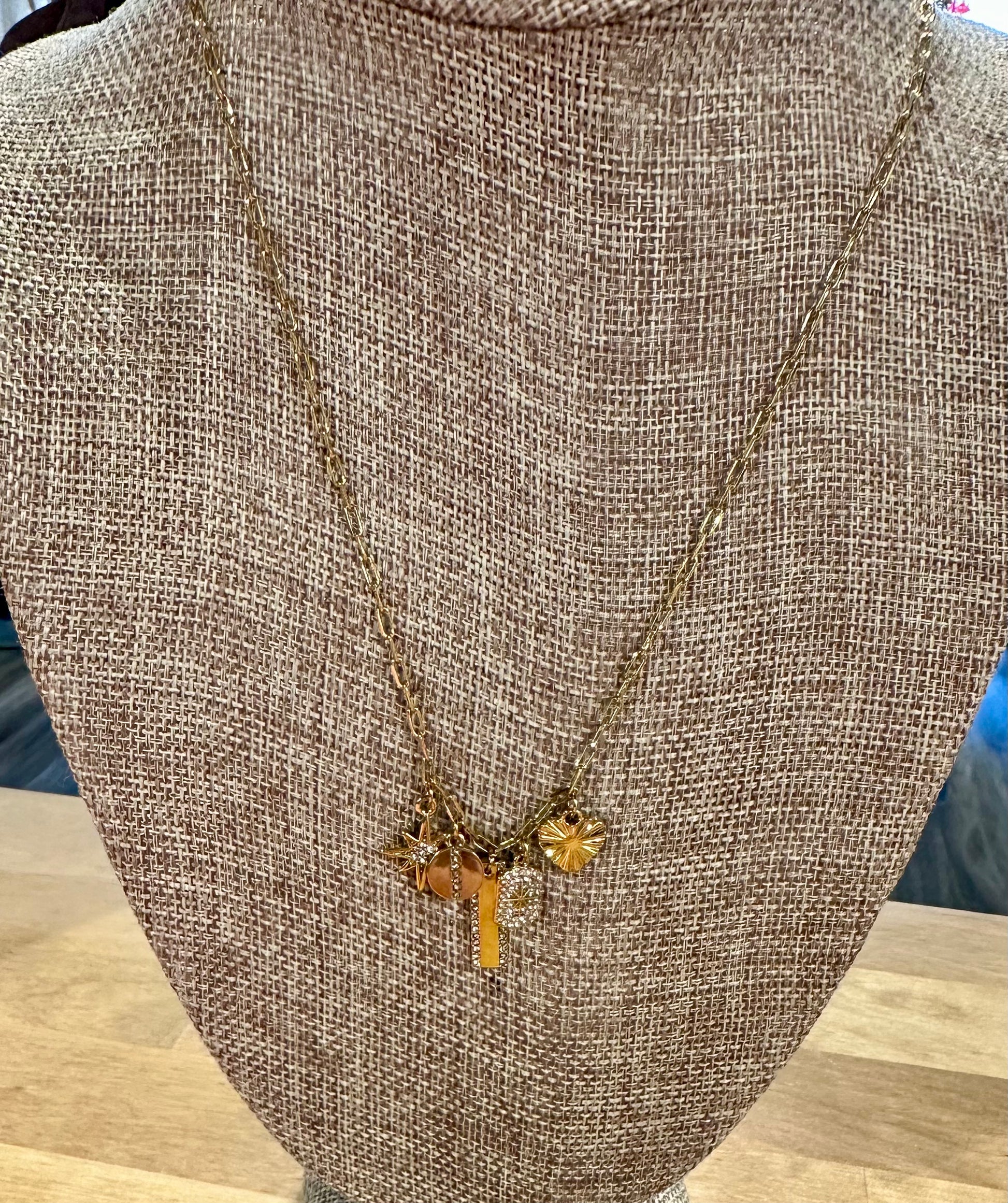 Multi Charm Mini Paperclip Chain Necklace-16"