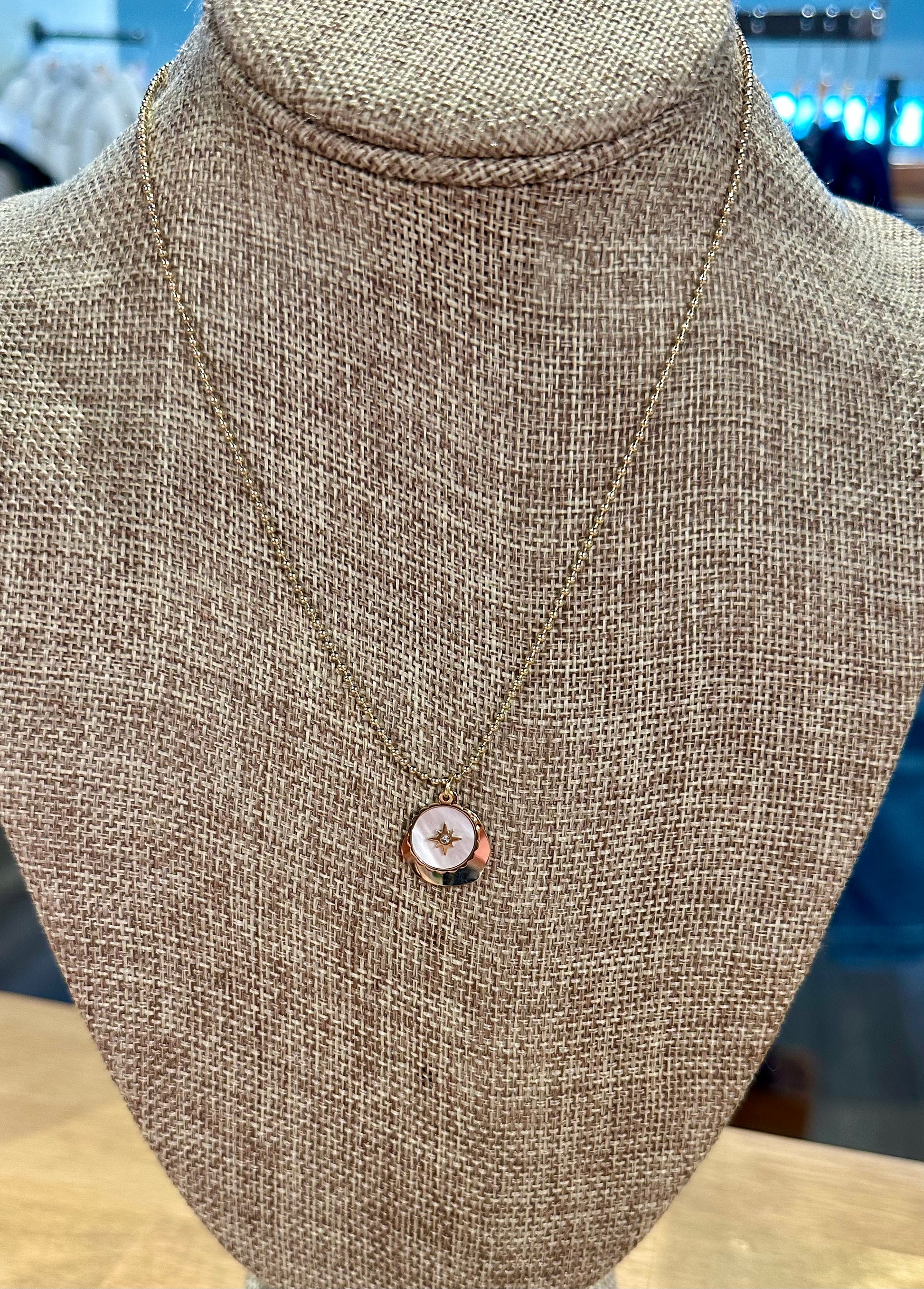 Pearl Coin Compass & Hammered Gold Charm Necklace