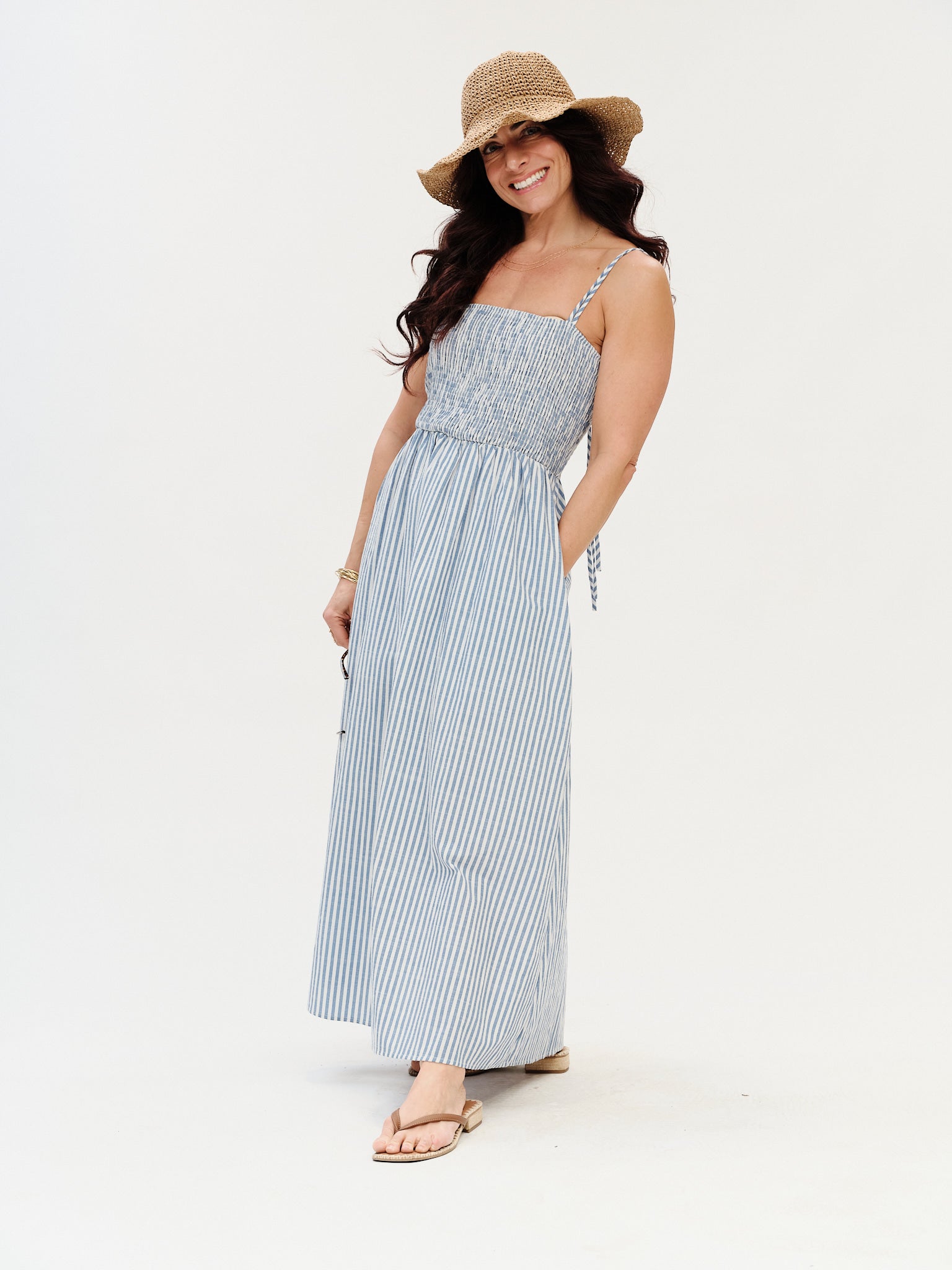 Six Fifty Ebony Striped Poplin Smocked Dress