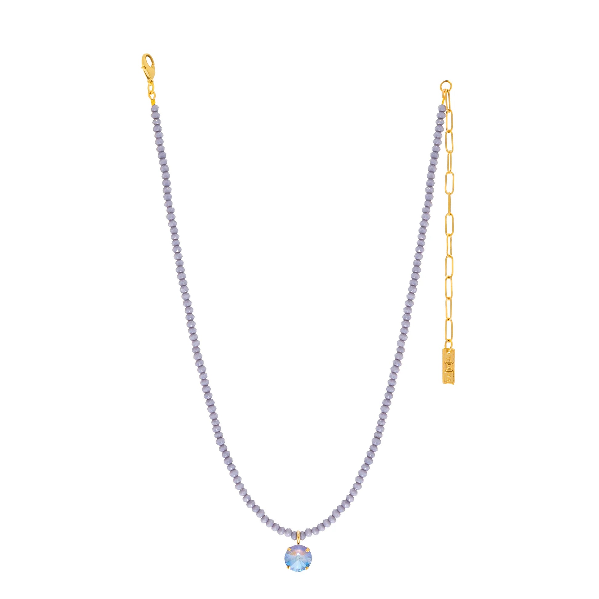 Liven up your look with the Paige Necklace in Midnight Express! This sparkly stunner will have you turning heads, featuring beautiful beads, high quality crystals and an antique gold-plated brass base metal made with love in Canada. Whether you're clinching a big deal or just looking to impress, this beauty's 14" chain and 4" extension will do the trick. Oh la la!